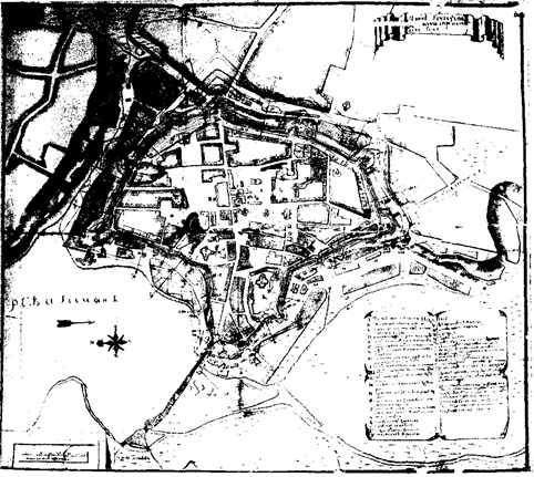 Изучение этого и других планов первой половины XVIII в. показывает, что в городах отсутствовало деление площадей на торговые и административные, да и вообще площади эти скорее напоминали сельские выгоны. Расположение крупных культовых зданий на площадях было также подчинено принципу свободной планировки, что только подчеркивало строгую центричность и симметрию композиции храмов. В русских городах собор ставили так, чтобы городская площадь располагалась у южного фасада (а не у западного, как в Западной Европе) ввиду того, что выход князя и приемы послов происходили через вход в собор с южной стороны. Такой особенности в украинских городах не наблюдается, хотя в зданиях центрического типа очень часто устраивались дополнительные входы с северной и южной стороны.